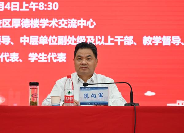 陈向军强调,必须统一思想、提高站位。深刻认识建设一流本科教育是贯彻落实习近平总书记关于教育的重要论述的战略需要,是实现内涵式高质量发展的必然要求,是“全省一流、全国知名”高水平师范大学建设的应有之意。要进一步在全校上下凝聚“本科教育是学校发展之本”的共识和合力。必须认清形势、把握大势。深入领会建设一流本科教育的时代要求,全面推进信息技术与教育教学深度融合,探索“互联网+”人才培养新模式,实施“人工智能+教师队伍”建设行动,充分利用大数据提高信息化管理水平,打造数字校园、智慧课堂、智慧实验室。必须聚焦重点、深化改革。坚决落实好立德树人根本任务,紧紧围绕全面提升人才培养能力这个核心,持续完善学科专业课程一体化建设体系,全面提升教师教学能力水平,全方位提升学生教育管理与服务质量,全面推进学校本科教育教学工作。