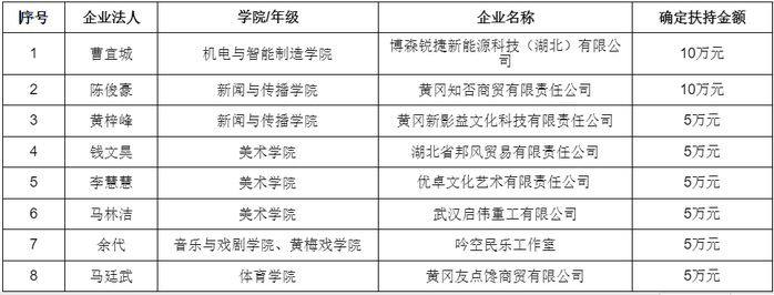 本网讯 近日,湖北省人力资源与社会保障厅、湖北省教育厅、共青团湖北省委员会公布“才聚荆楚·创业湖北”2023年度湖北省大学生创业扶持项目拟扶持项目名单,我校共有8名学生的创业项目入选,共获得扶持资金50万元,扶持的总金额为我校历年之最。