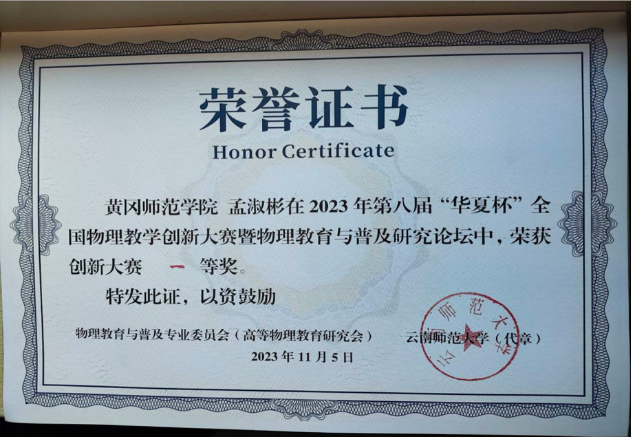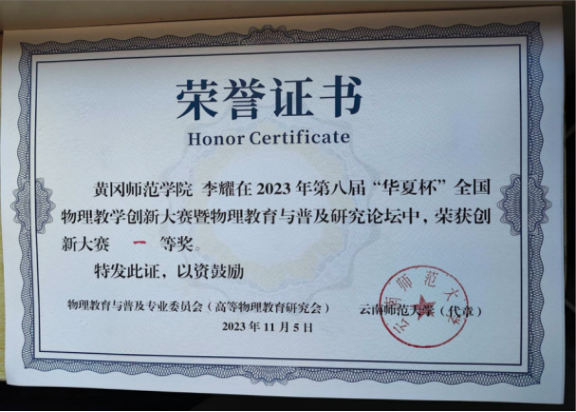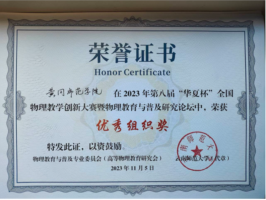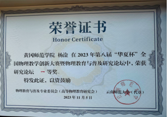 本次比赛分为物理教学创新大赛与物理教育研究论坛两个赛事。我校物理与电信学院共有七名同学参加比赛。王小兰教授受邀担任本次大赛评委。在指导老师的悉心指导、参赛选手的认真准备下,本次比赛我校荣获“优秀组织奖”,杨淦获研究生论坛组一等奖;李耀、孟淑彬荣获本科生教学技能组一等奖;李林吉荣获本科生教学技能组二等奖;黄小芊荣获研究生教学技能组二等奖;严翔宇、杨淦、南驰荣获研究生教学技能组三等奖。