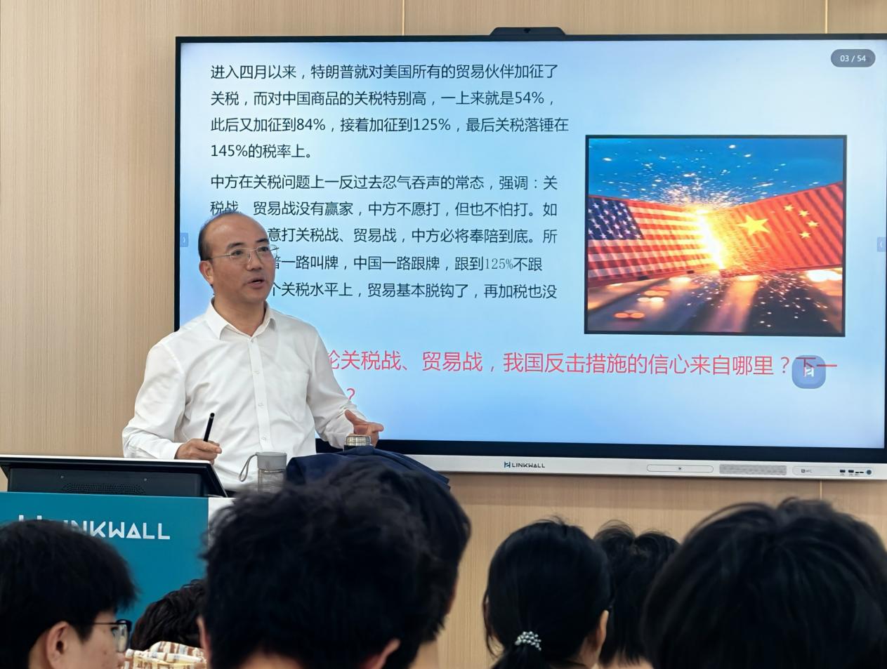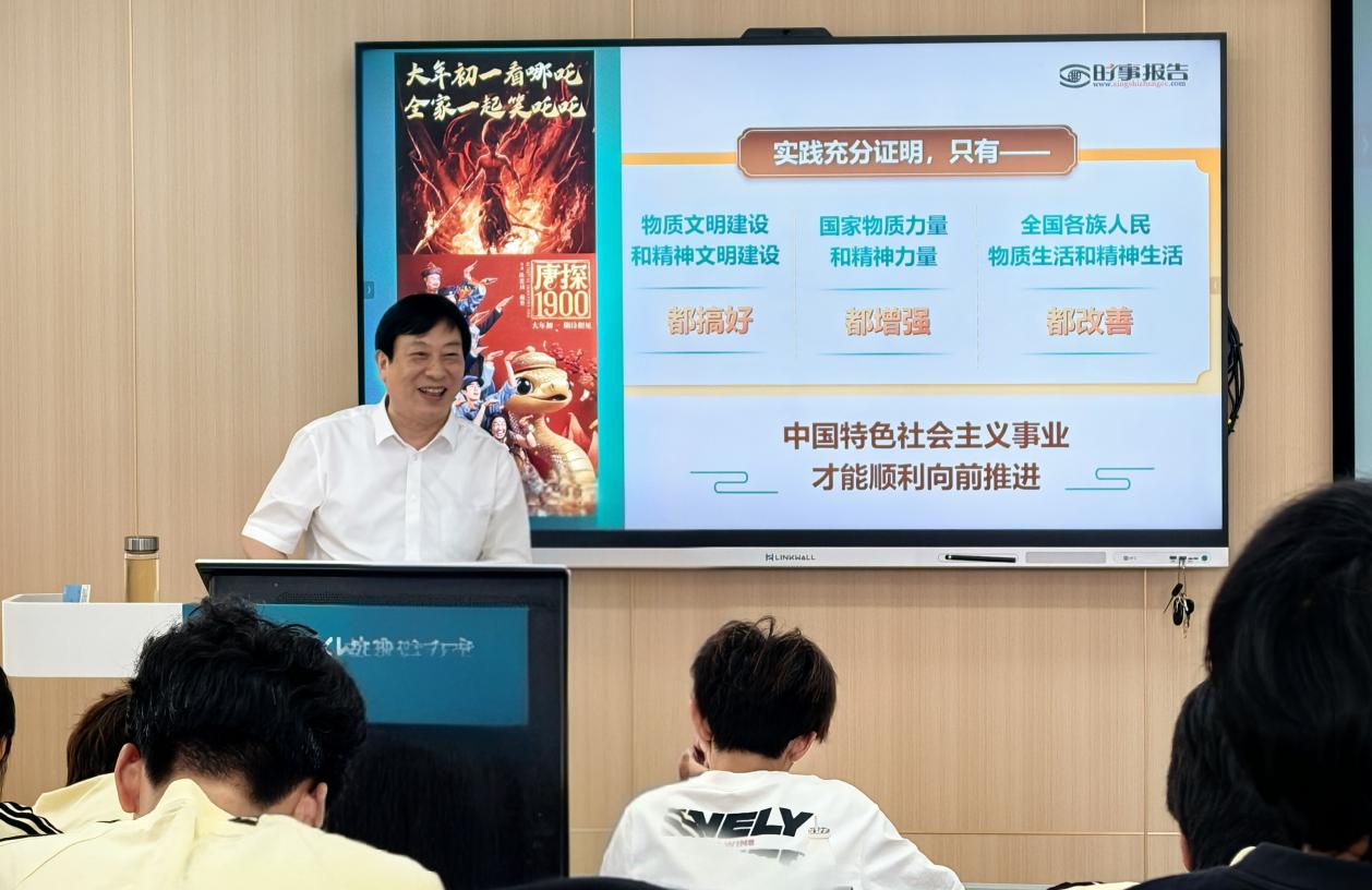 校领导讲授的思政课紧密联系社会热点问题,教学内容丰富、具体案例生动、课堂生动活泼、语言幽默风趣,取得了良好的教学效果,受到学生的一致欢迎。大家纷纷表示,要持续加强对形势与政策的学习,提升自身专业能力,在新时代新征程中坚定信心、笃定实干,为中华民族伟大复兴的中国梦贡献力量。