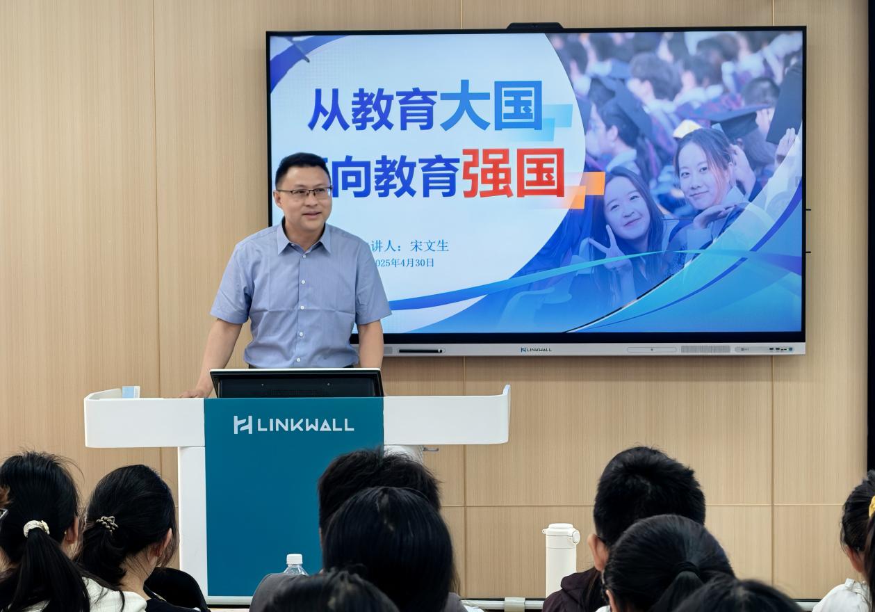 4月30日下午,校党委常委、副校长宋文生以《从教育大国迈向教育强国》为题,为全校优师计划2024级学生讲授思政课。