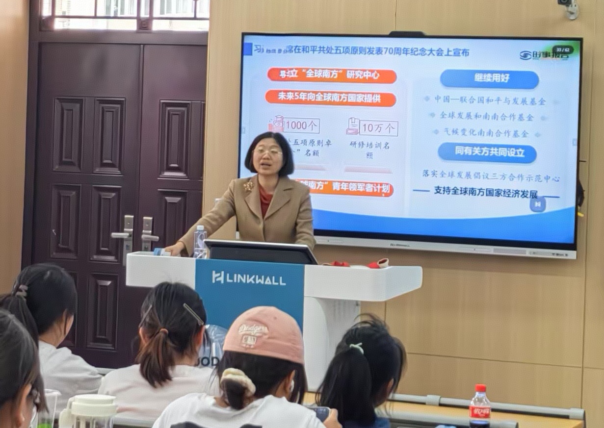 4月16日下午,校党委常委、纪委书记、监察专员胡娟以《谱写全球南方团结合作新篇章》为题,为数学与统计学院应数2024级学生讲授思政课。