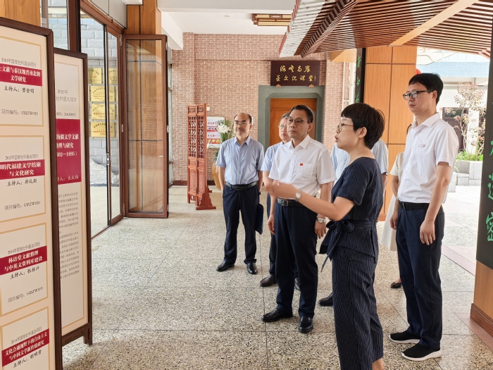 座谈会前,闽南师范大学党委常委、副校长林耀进陪同参观了该校的中国语言文学博士点、服务国家特殊需求博士项目及闽南文化办学特色展。